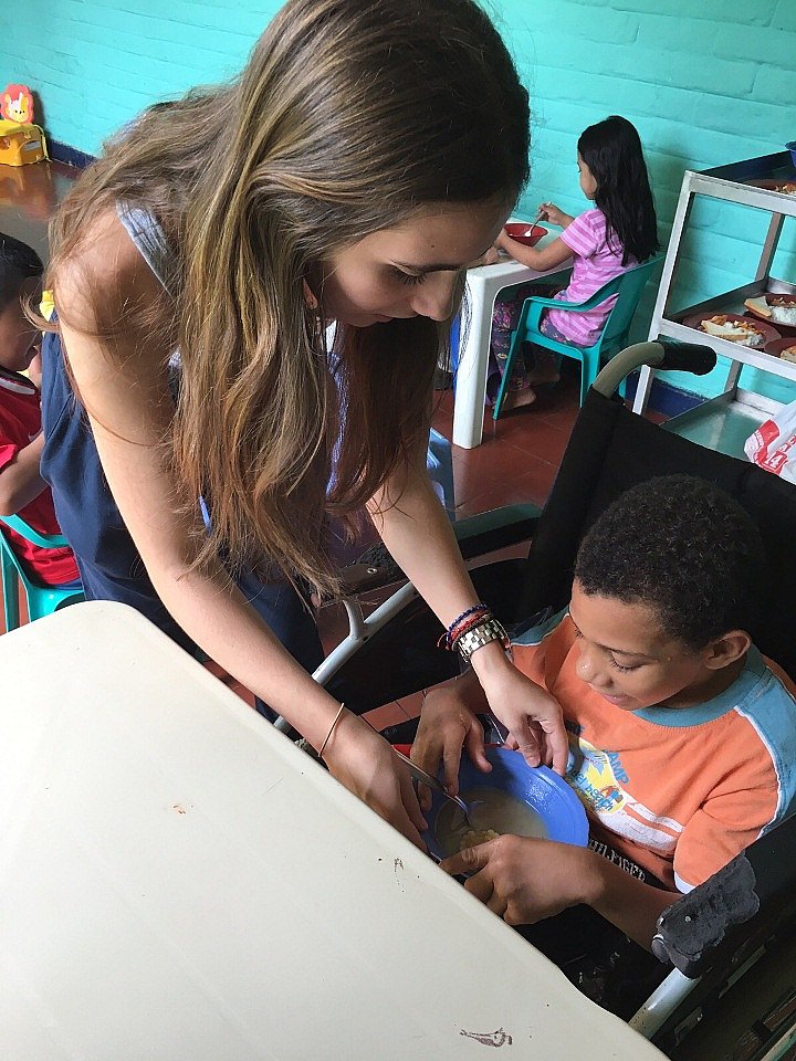 voluntaria para cuidar, alimentar y bañar a los niños de preescolar